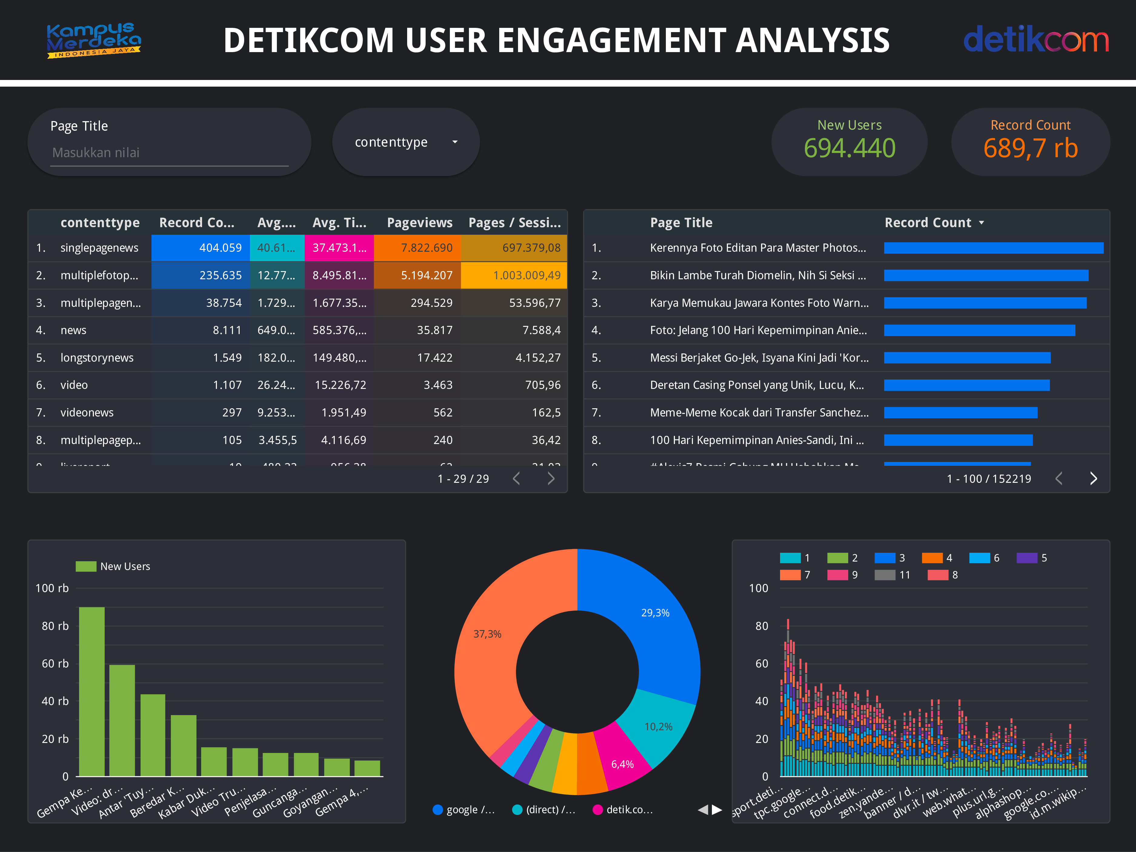 This dashboard allows us to delve deeper into what Detikcom users truly want. Through interactive data visualizations, we can understand reading preferences, identify trends, enhance engagement, analyze the time users spend on various types of content, optimize user experience, and ultimately drive business growth and improve user satisfaction.